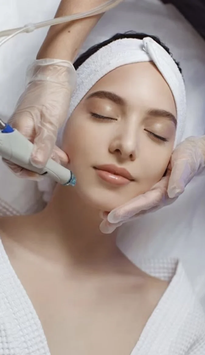 Microdermabrasion is a non-invasive cosmetic treatment that involves the use of a specialized tool to gently exfoliate and vacuum away the outer layer of dead skin cells from the face. This can improve the texture and appearance of the skin, reduce the appearance of fine lines and wrinkles, and minimize the appearance of pores and acne scars.